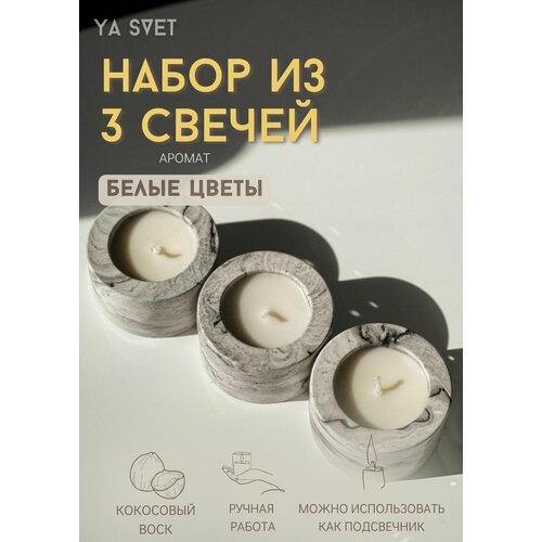 Набор из 3 ароматических свечей "Белые цветы" круг 3 шт