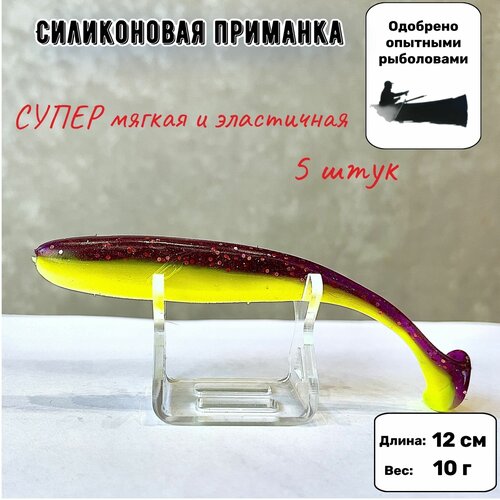 Съедобная силиконовая приманка / 12 см / Виброхвост для рыбалки на щуку 5 штук / Рыбалка Снасти Джиг Отводной