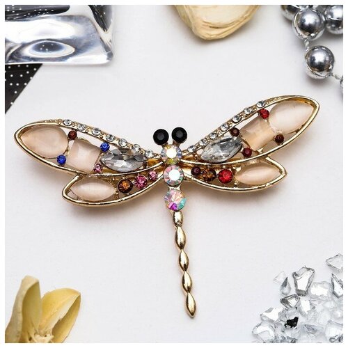 Брошь "Стрекоза" утренняя, цветная в золоте