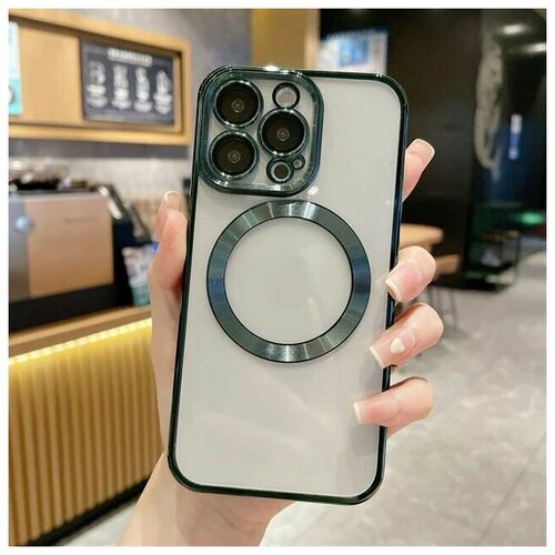 Магнитный силиконовый чехол на iPhone 11 PRO магсейф (на айфон 11 про) с поддержкой Magsafe с магнитной зарядкой и защитой камеры, зеленый