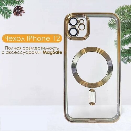 Магнитный силиконовый чехол на iPhone 11 PRO магсейф (на айфон 11 про) с поддержкой Magsafe с магнитной зарядкой и защитой камеры, золотой