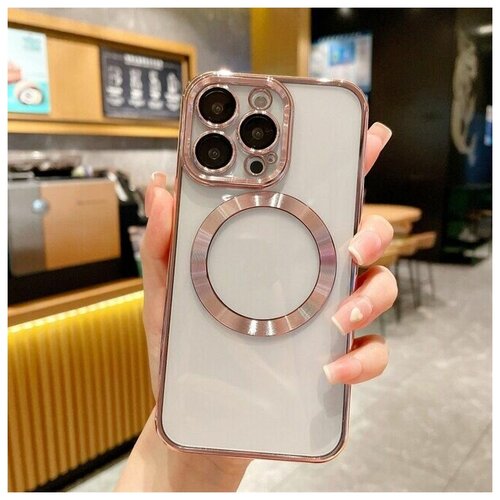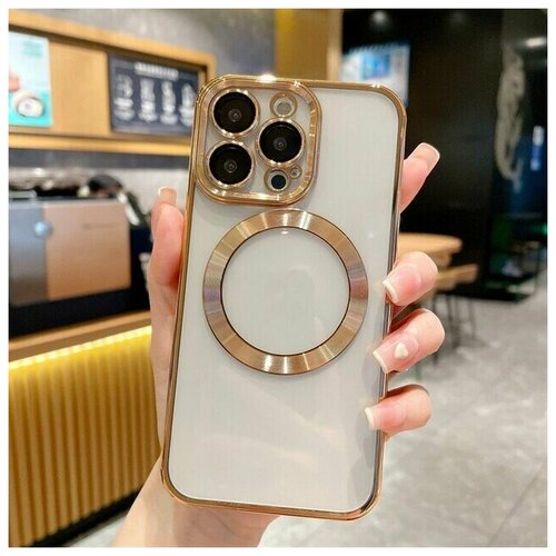Магнитный силиконовый чехол на iPhone 13 магсейф (на айфон 13) с поддержкой Magsafe с магнитной зарядкой и защитой камеры, золотой