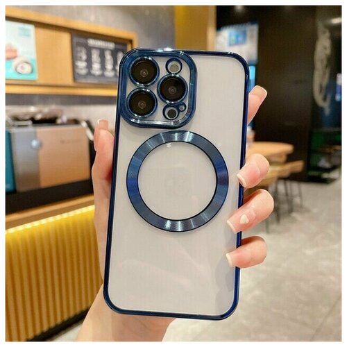 Магнитный силиконовый чехол на iPhone 11 PRO магсейф (на айфон 11 про) с поддержкой Magsafe с магнитной зарядкой и защитой камеры, синий