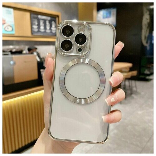 Магнитный силиконовый чехол на iPhone 12 магсейф (на айфон 12) с поддержкой Magsafe с магнитной зарядкой и защитой камеры, серебро