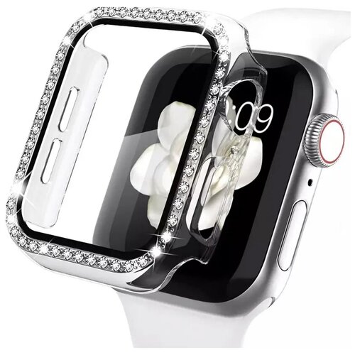Защитный противоударный чехол со стразами для корпуса Apple Watch Series 7/8 - 41 мм, серебристый