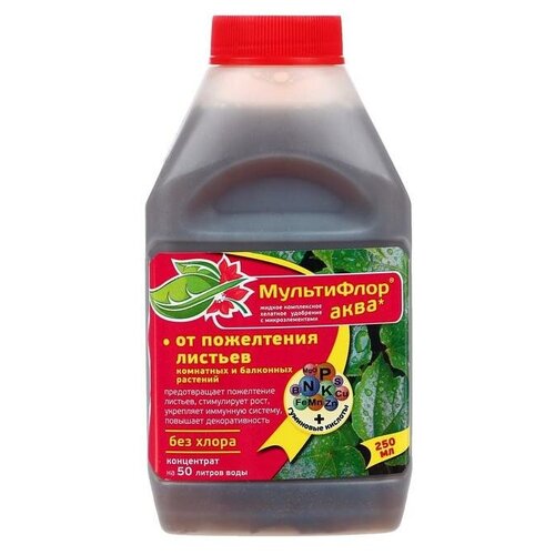 Удобрение "Мультифлор Аква", от пожелтения листьев, комнатных и балконных, 250 мл (1шт)