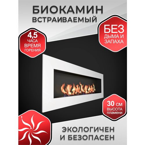 Биокамин встроенный ZeFire Elliot 1200 с белой рамкой для дома и квартиры