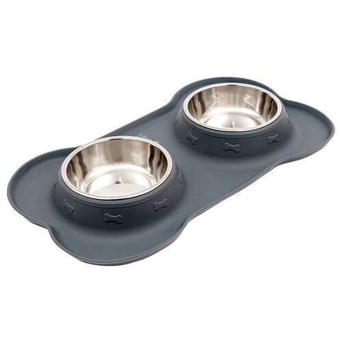 Миска для животных двойная (2 чаши) с силикон. основанием ZooOne, размер S, 2x145мл, (серая), 22017