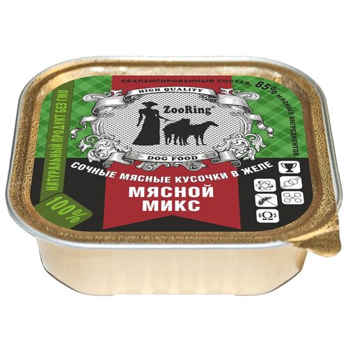 ZooRing Корм консервированный для собак Сочные мясные кусочки в желе Мясной микс, 100г (16 банок)