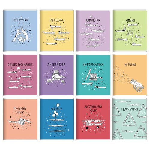 Набор тетрадей предметных А5, 48л. 12шт. кл/лин, скрепка. Feed us N2526-37 1 шт.