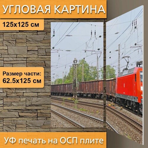Угловая модульная картина "Грузовой поезд, целого, db" для интерьера на ОСП плите, 125х125 см.