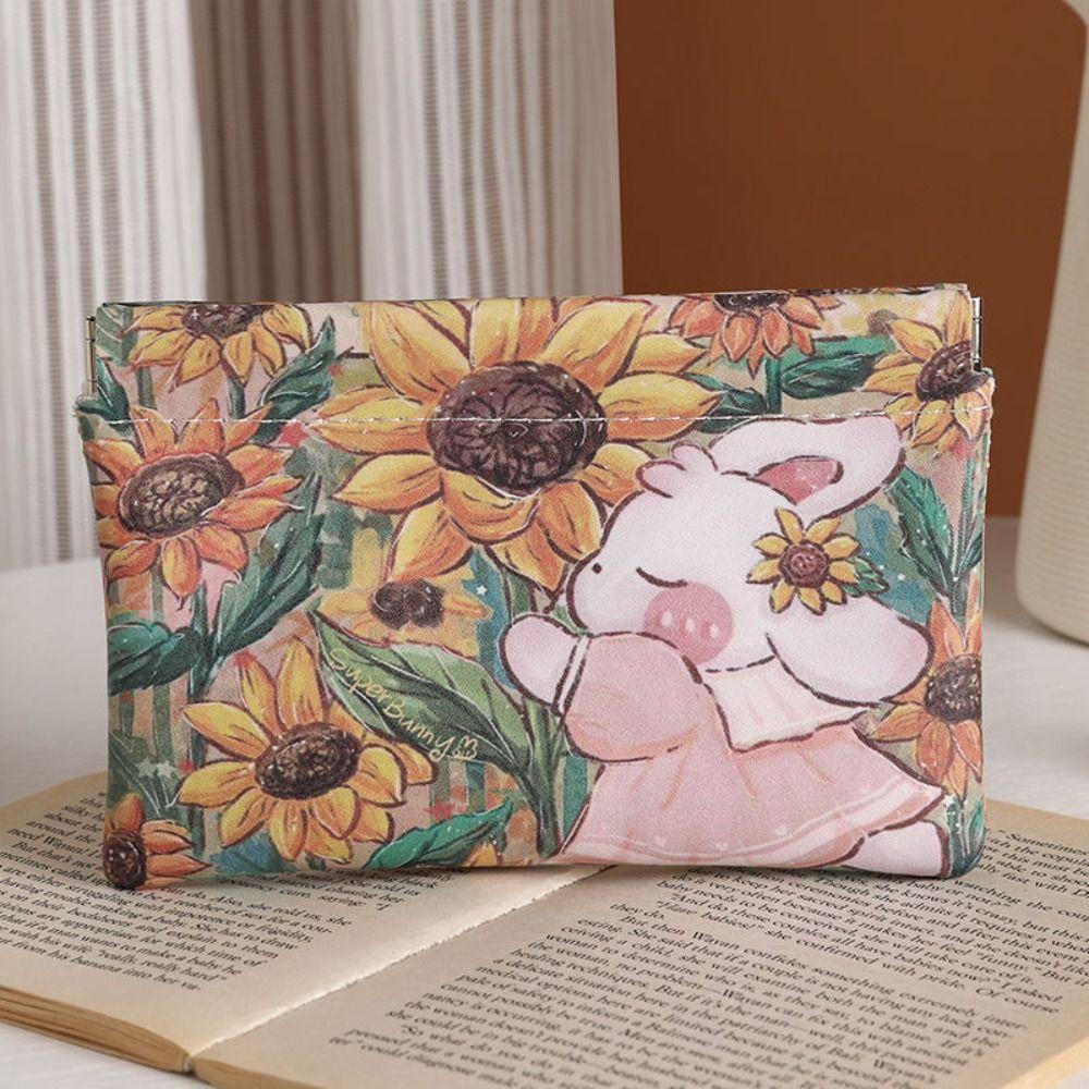 PU Cosmetic Bag Waterproof Mini Storage Bags Fashion Coin Pouch Travel 12x11.5cm-Sunflower