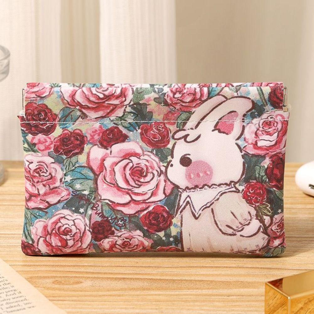 PU Cosmetic Bag Waterproof Mini Storage Bags Fashion Coin Pouch Travel 12x11.5cm-Red rose