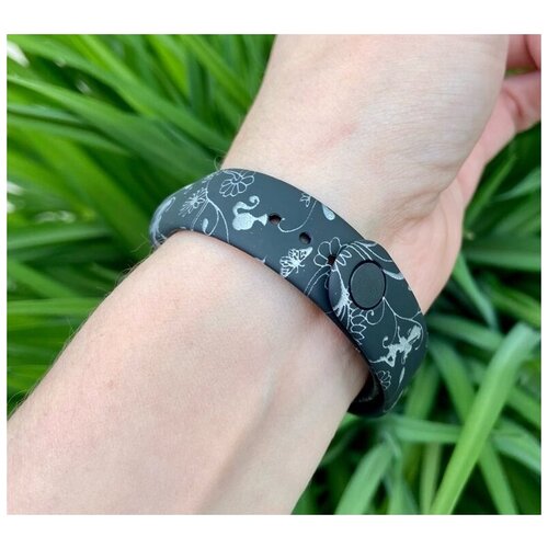 Ремешок для Mi Band 5/Mi Band 6 черный с серебристыми цветами