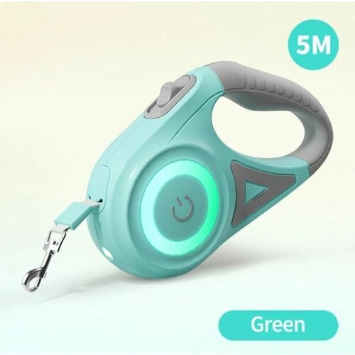 Поводок рулетка с разноцветной подсветкой и фонариком, рулетка 5 метров