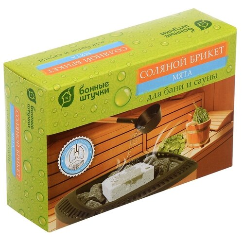 Соляной брикет для бани с травами "Мята" 1,3кг(14,5*10,5*5см)/9 - 1 ед. товара