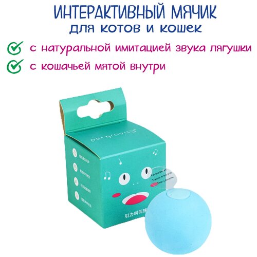 Шарик для котов с кошачьей мятой и звуком лягушки / Интерактивная игрушка для котов