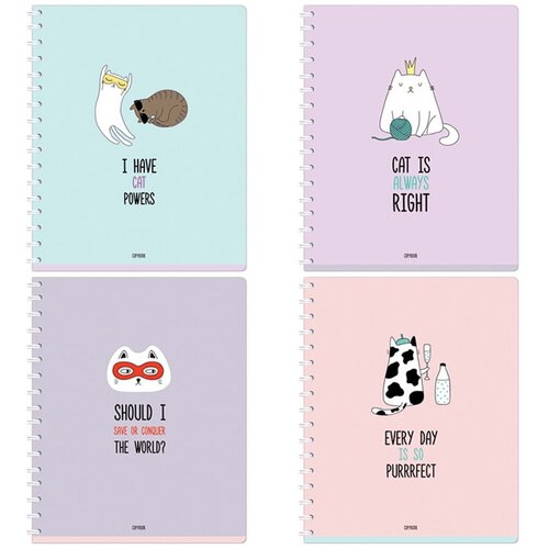Тетрадь 96л., А5, клетка на гребне MESHU "Right cat", матова ламинация, выборочный УФ-лак