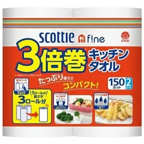 Nippon Paper Crecia Corporation Scottie Fine Многоразовые нетканные кухонные полотенца с цветным рисунком в рулоне, 52 листа