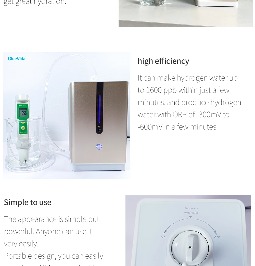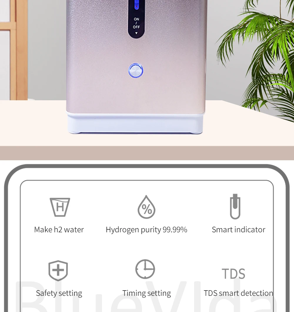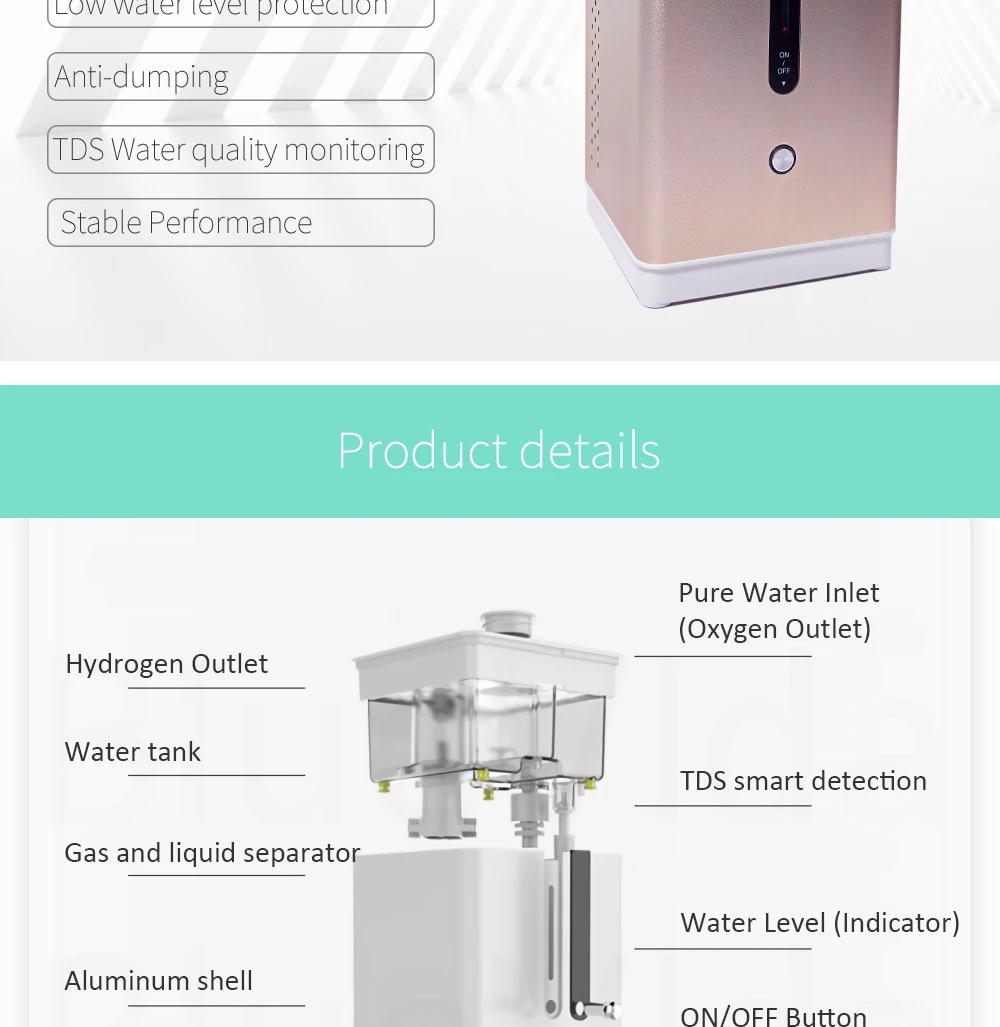 Когда качество воды низкое, выход водорода может уменьшиться, и труба может быть заблокирована шкалой, что приводит к более короткому сроку службы машины. Пожалуйста, используйте рекомендуемый источник воды.
