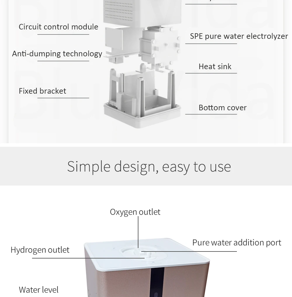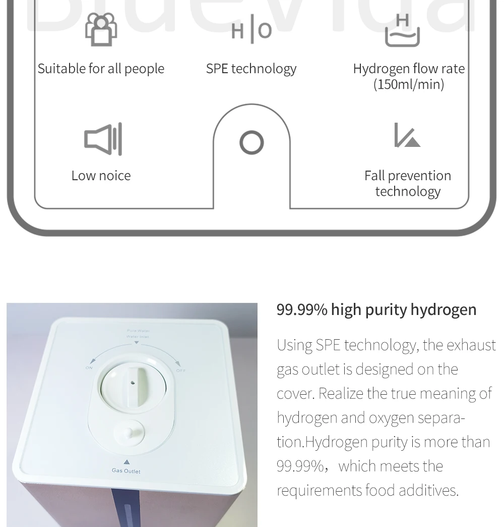 Bluevida 99.99% водородная Ингаляционная машина высокой чистоты с низким уровнем шума, производящая водородную воду H2 ингаляционный генератор SPE/PEM 150 мл/м
