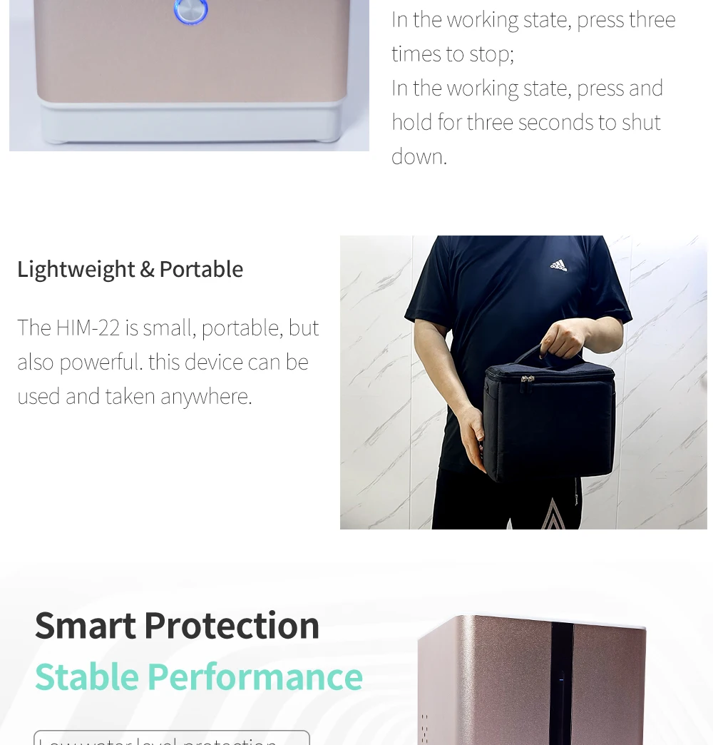 Аппарат для ингаляции чистого водорода HIM-22 имеет явное воздействие на дыхательную систему, мозговые нервы, болезни Альцгеймера, Паркинсона и другие проблемы, улучшает ринит, легкие, депрессию, бессонницу и т. Д. Облегчают боль после химиотерапии у остро больных, это также может уменьшить количество новообразований, предотвратить и улучшить новообразования, рак, И противостоят радиации.