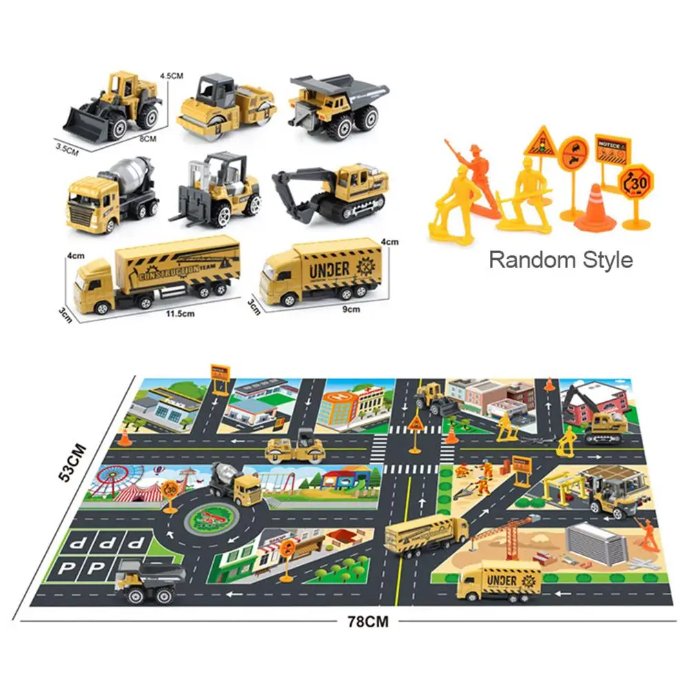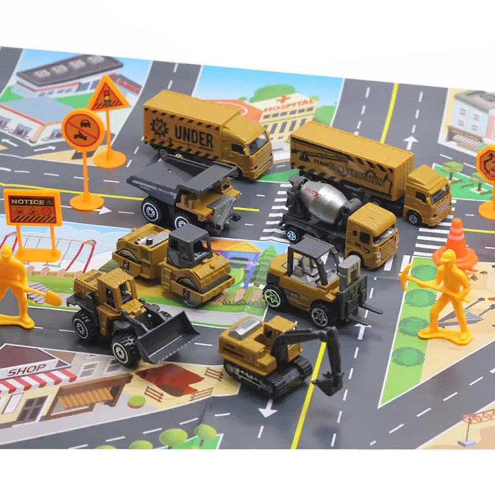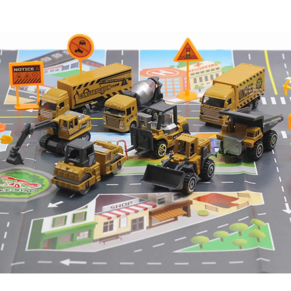 8 шт. мини-строительный грузовик модели автомобилей дорожный знак городской ковер с картой Комплект детских игрушек