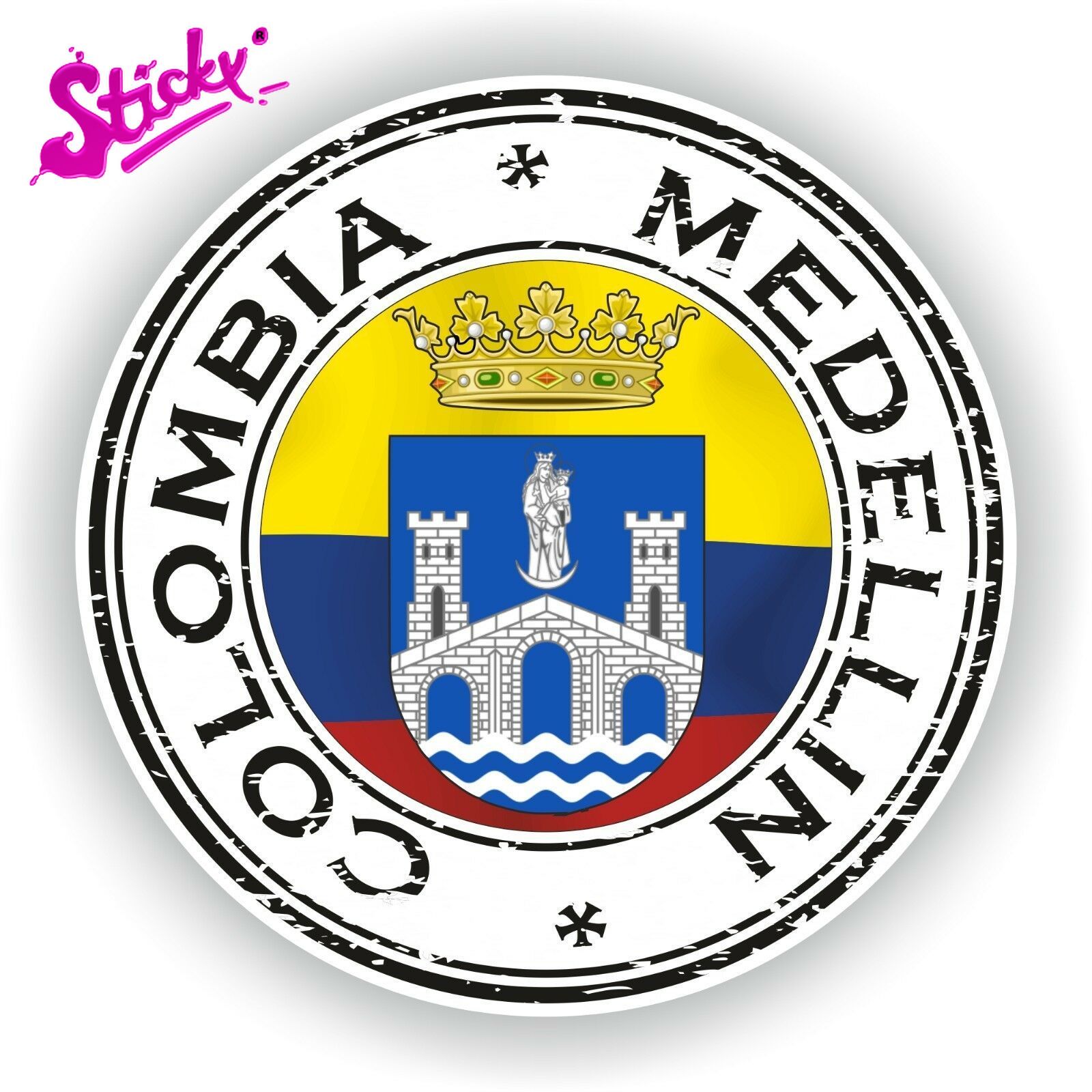 STICKY Colombia Medellin Stamp Seal Sticker Decal For Car Laptop Tablet Fridge Door Decals Guitar Window Stickers | Автомобили и