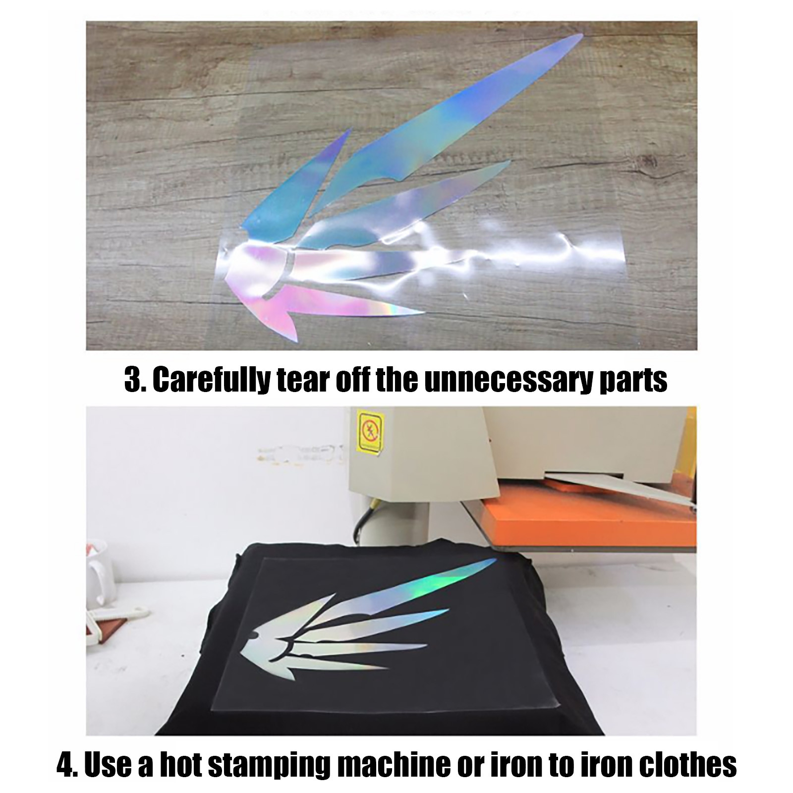 Украсьте футболки, брюки, толстовки, сумки, обувь, подушки и многое другое горячим прессом или домашним утюгом! Применяйте при более низкой температуре 305 ° F в течение 15 секунд при умеренном давлении. Придерживайтесь 100% хлопка, 100% полиэфирного волокна, смеси хлопка/полиэстера и кожи.