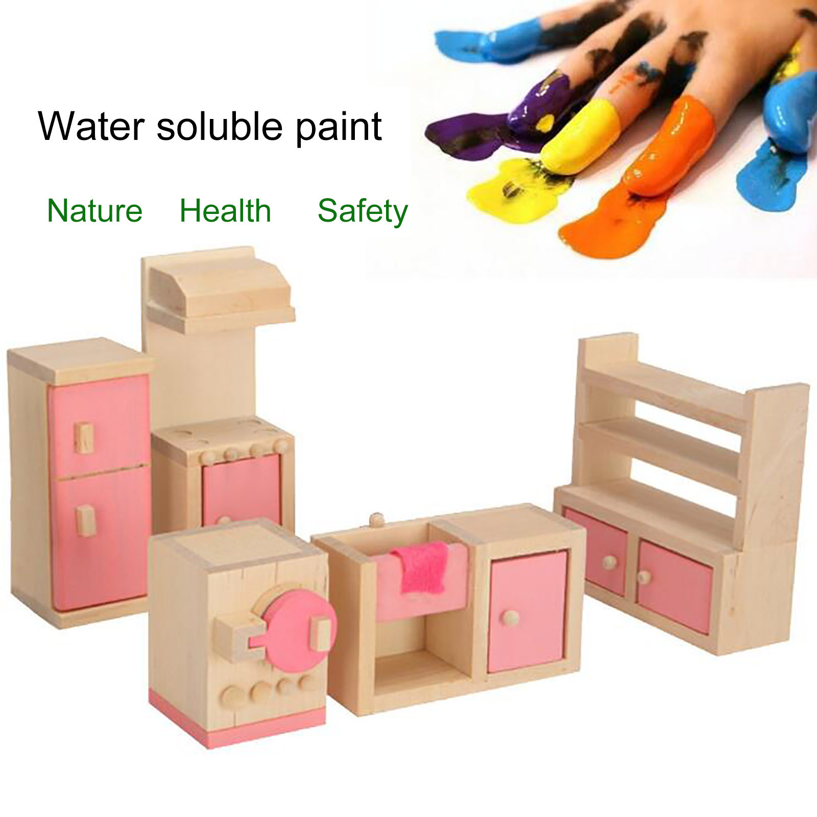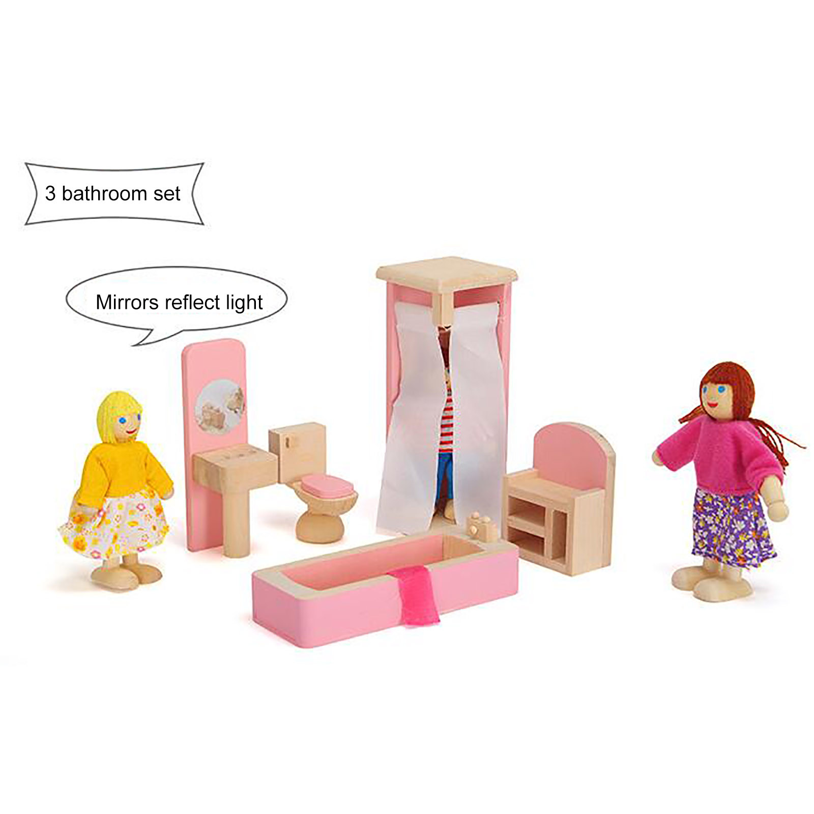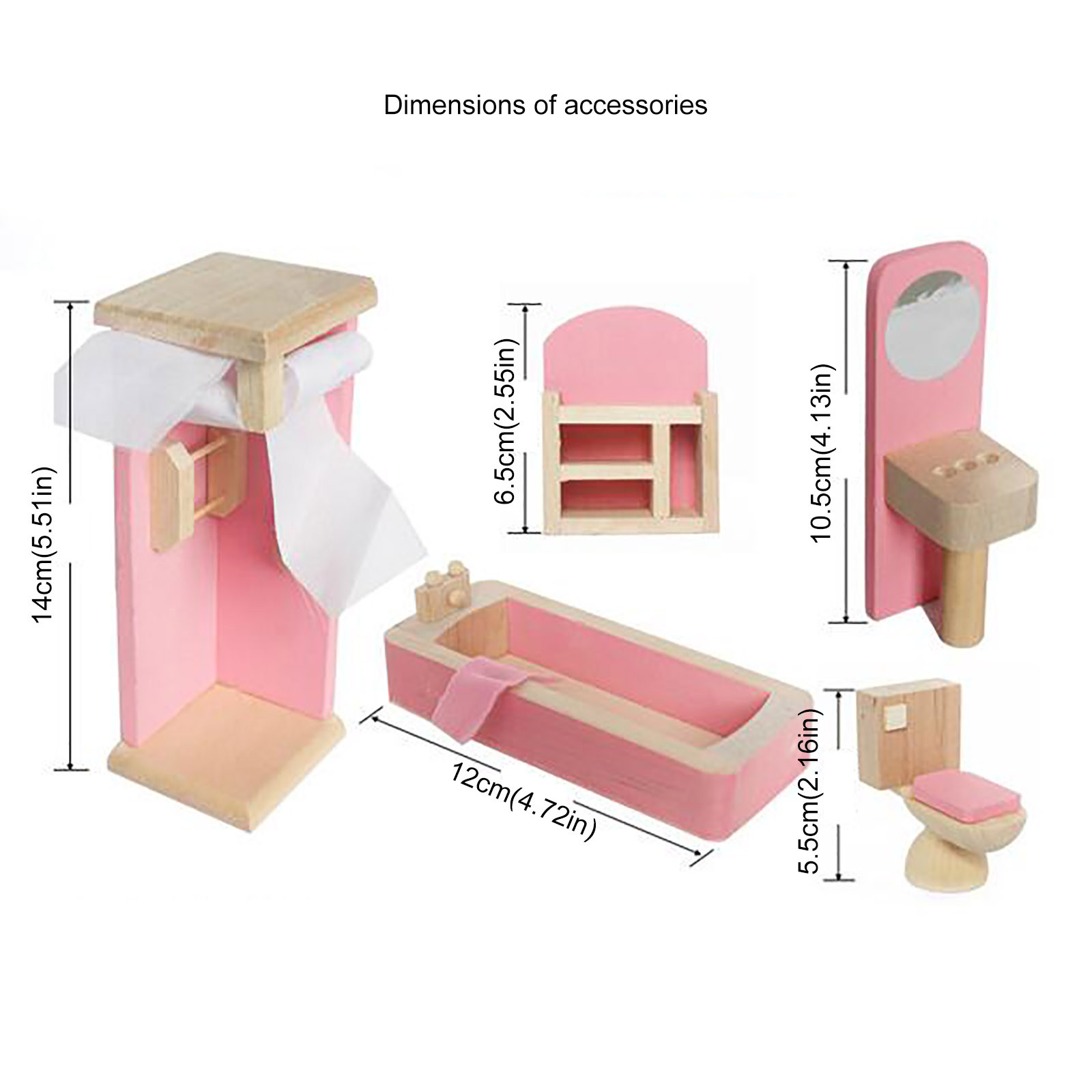 Цветная деревянная кукольная мебель для дома, деревянная миниатюрная ванная комната/гостиная
