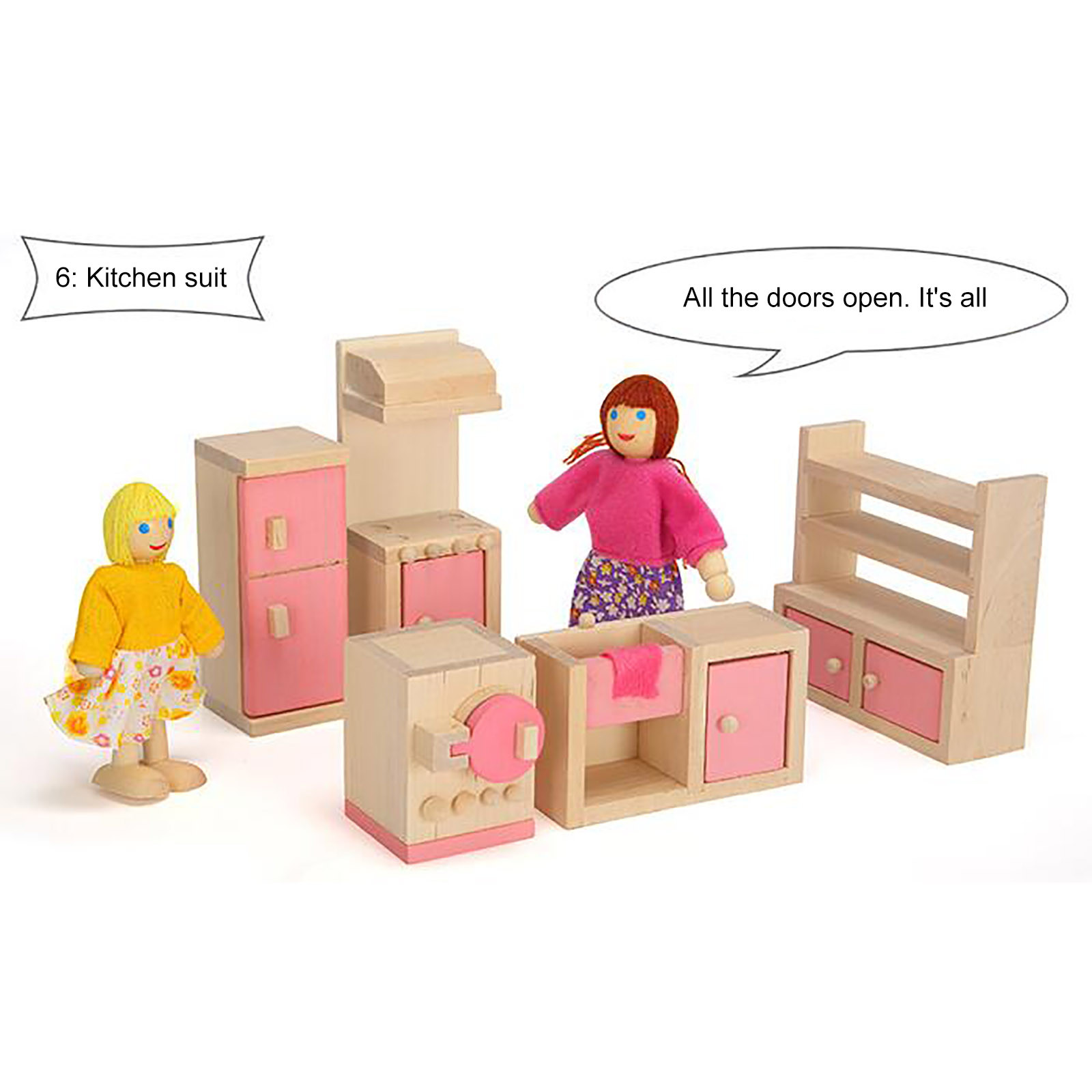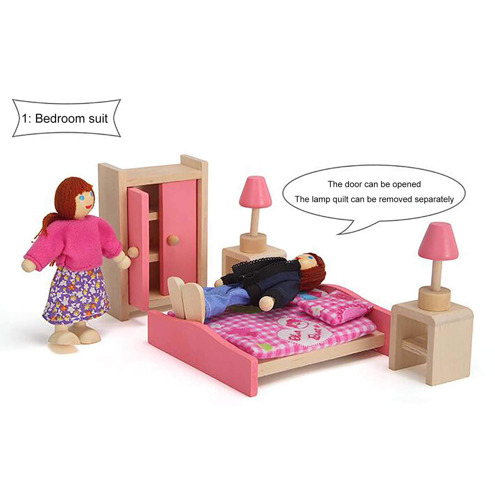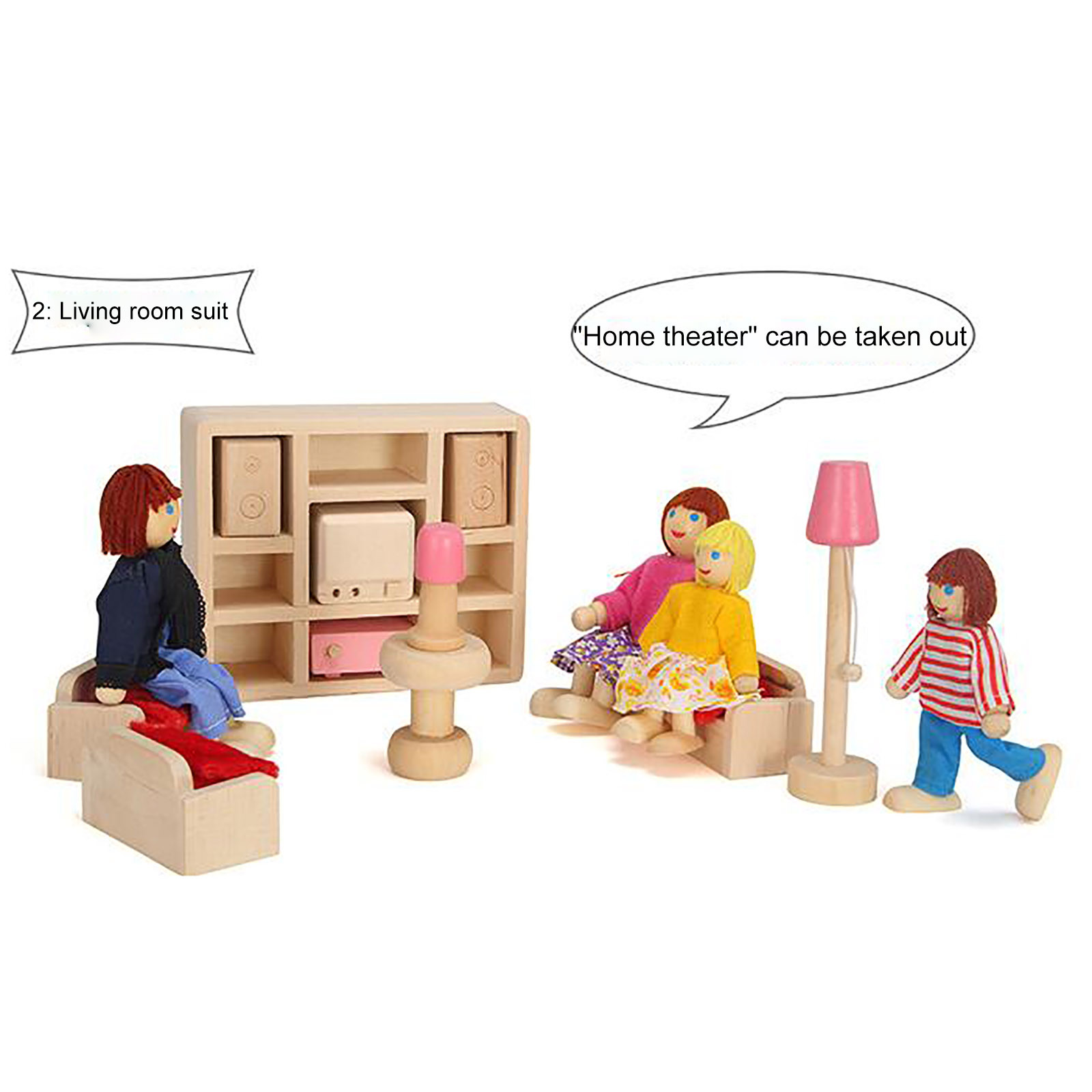 Цветная деревянная кукольная мебель для дома, деревянная миниатюрная ванная комната/гостиная