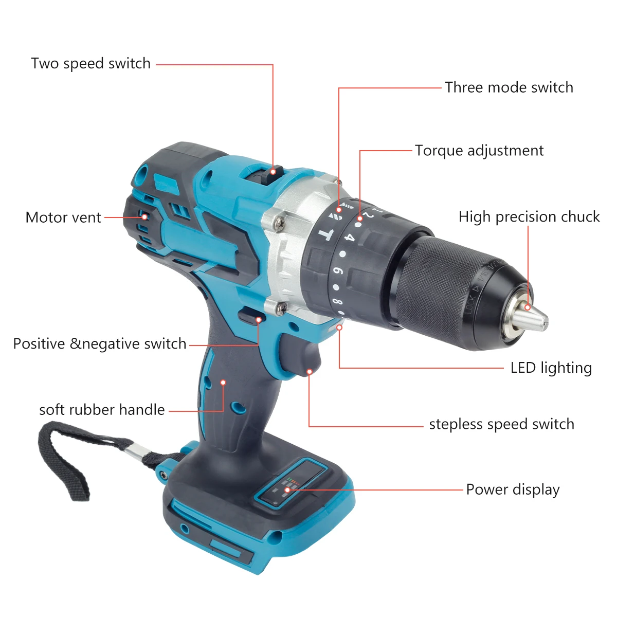 13 мм мощная многофункциональная литиевая электрическая дрель, перкуссионная дрель, высокоскоростная ледяная дрель с высоким крутящим моментом