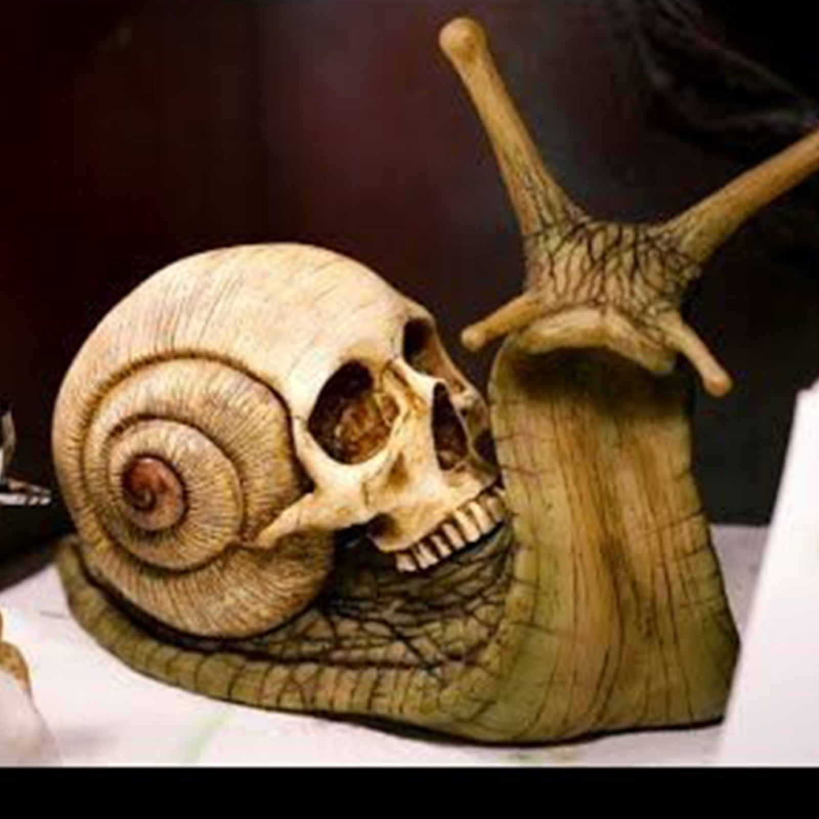 Фигурка улитки с черепом. Интересный предмет мебели, который привлекает внимание. Это также может стать необычным маленьким акцентом в вашем саду.