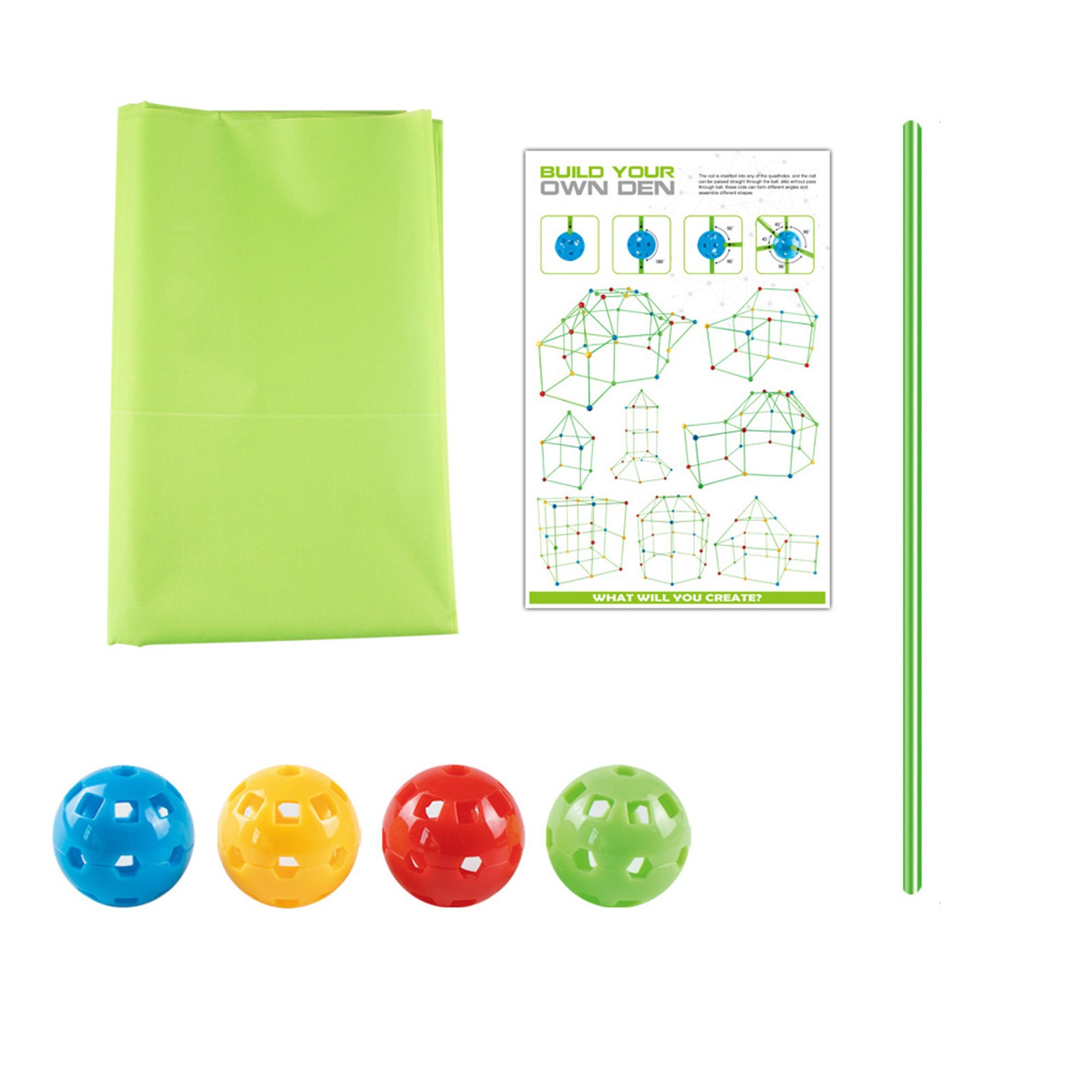 Прочный и портативный и легко построить: Изготовлен из прочного и высококачественного пластика. Пластиковые штифты легко и безопасно вставляются в шаровые соединители, которые являются многомерными и с несколькими отверстиями, направление штифтов может быть изменено. Вам не придется беспокоиться о разрыве конструкций.