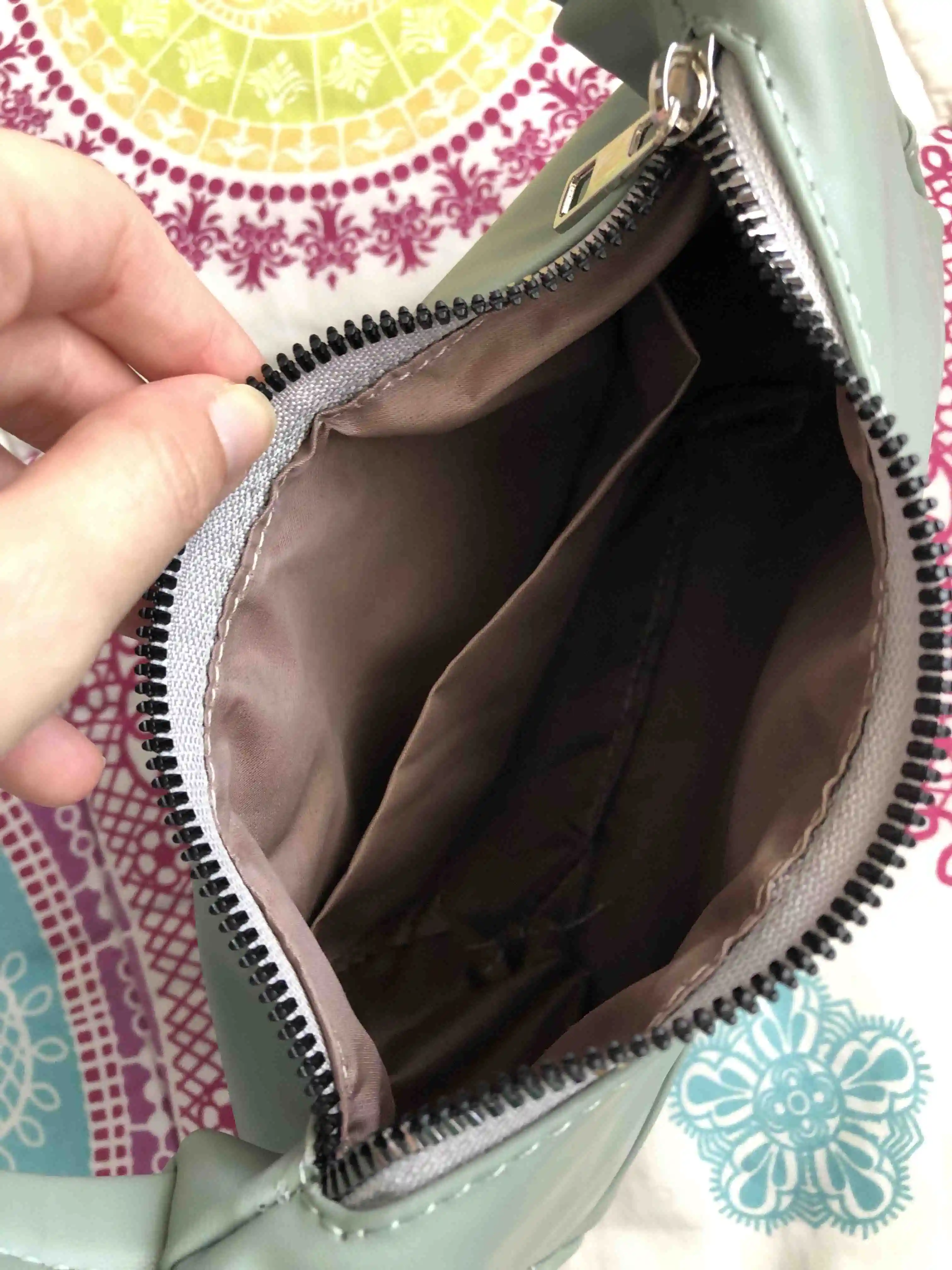 Достаточно места, чтобы разместить ваши маленькие предметы первой необходимости, такие как телефон, карты, кошелек, солнцезащитные очки, косметика. На молнии.