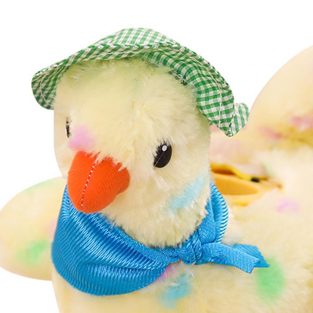 Мягкая и удобная ткань, приятная на ощупь. Особенности лица трехмерные и милые, с шапками и шарфами, которые заставляют детей любить его. Нажмите на кнопку крыльев, Курица Поет, и когти растянутся вверх и вниз, тем самым привлекая внимание детей.