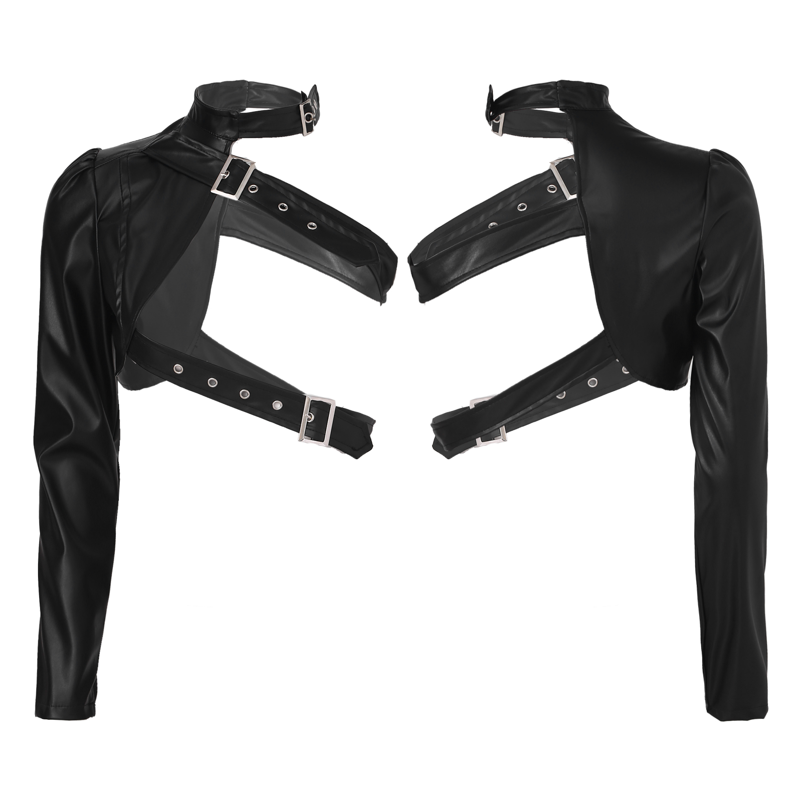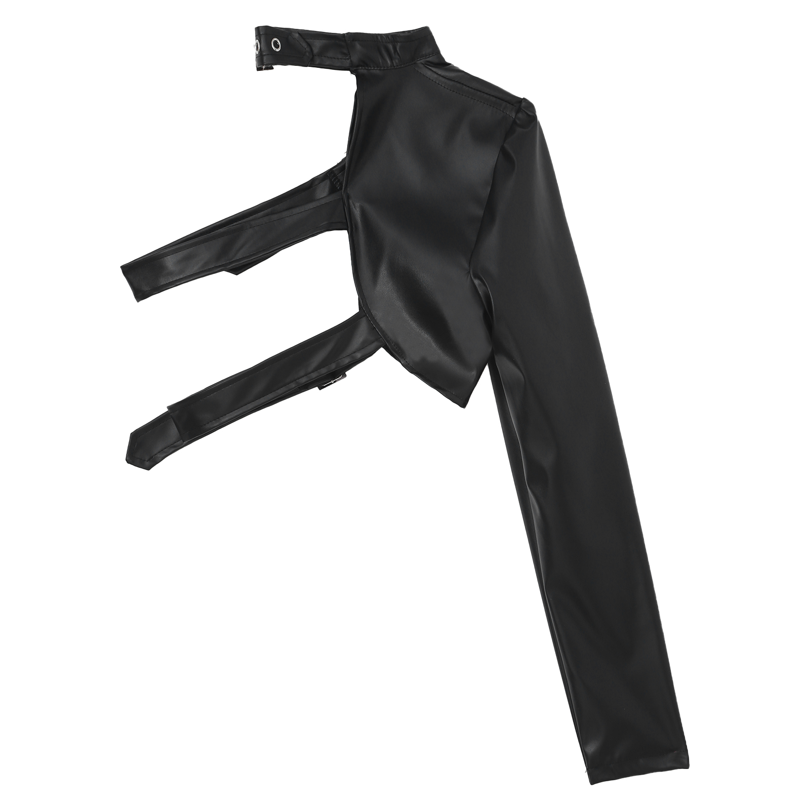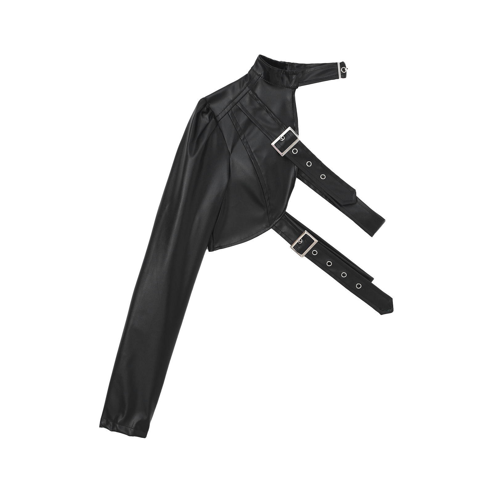 Женский укороченный топ на одно плечо с длинным рукавом, Регулируемая металлическая пряжка, необычная куртка из искусственной кожи.
