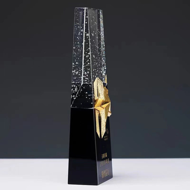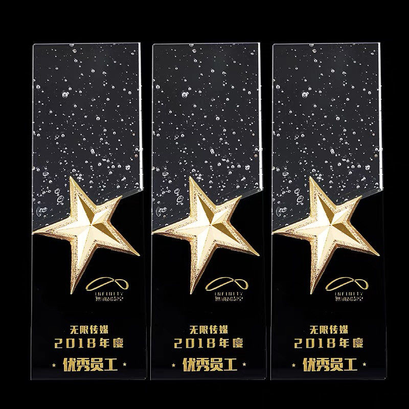 Creative black and white stitching star crystal trophy custom lettering honor competition awards commemorative decorative trophy