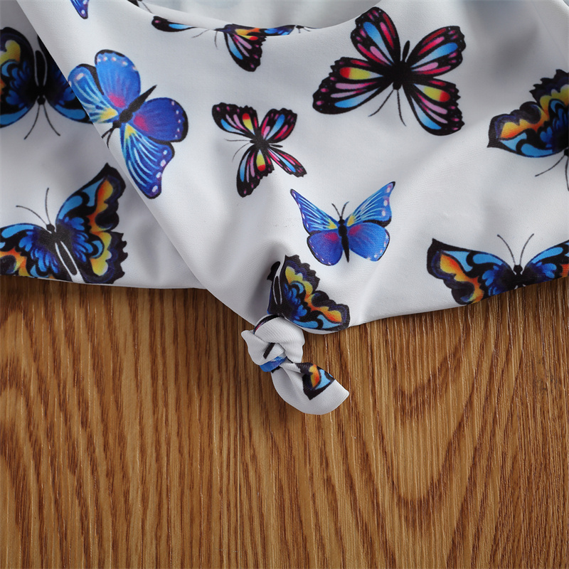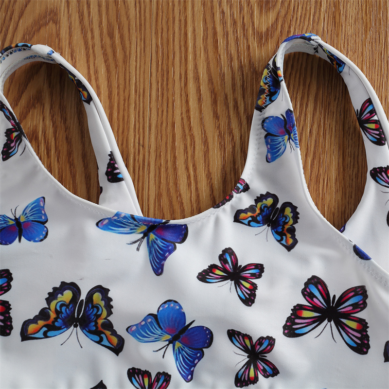 Милый комплект бикини из 2 предметов для девочек топы на бретельках с принтом бабочки и одноцветные трусы Купальник принцессы для отдыха и Приморья