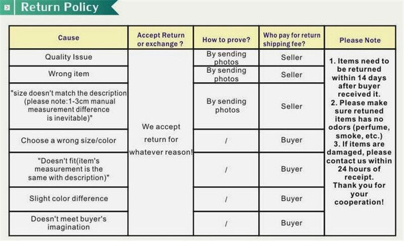 2. Пожалуйста, внимательно проверьте таблицу размеров перед покупкой товара.