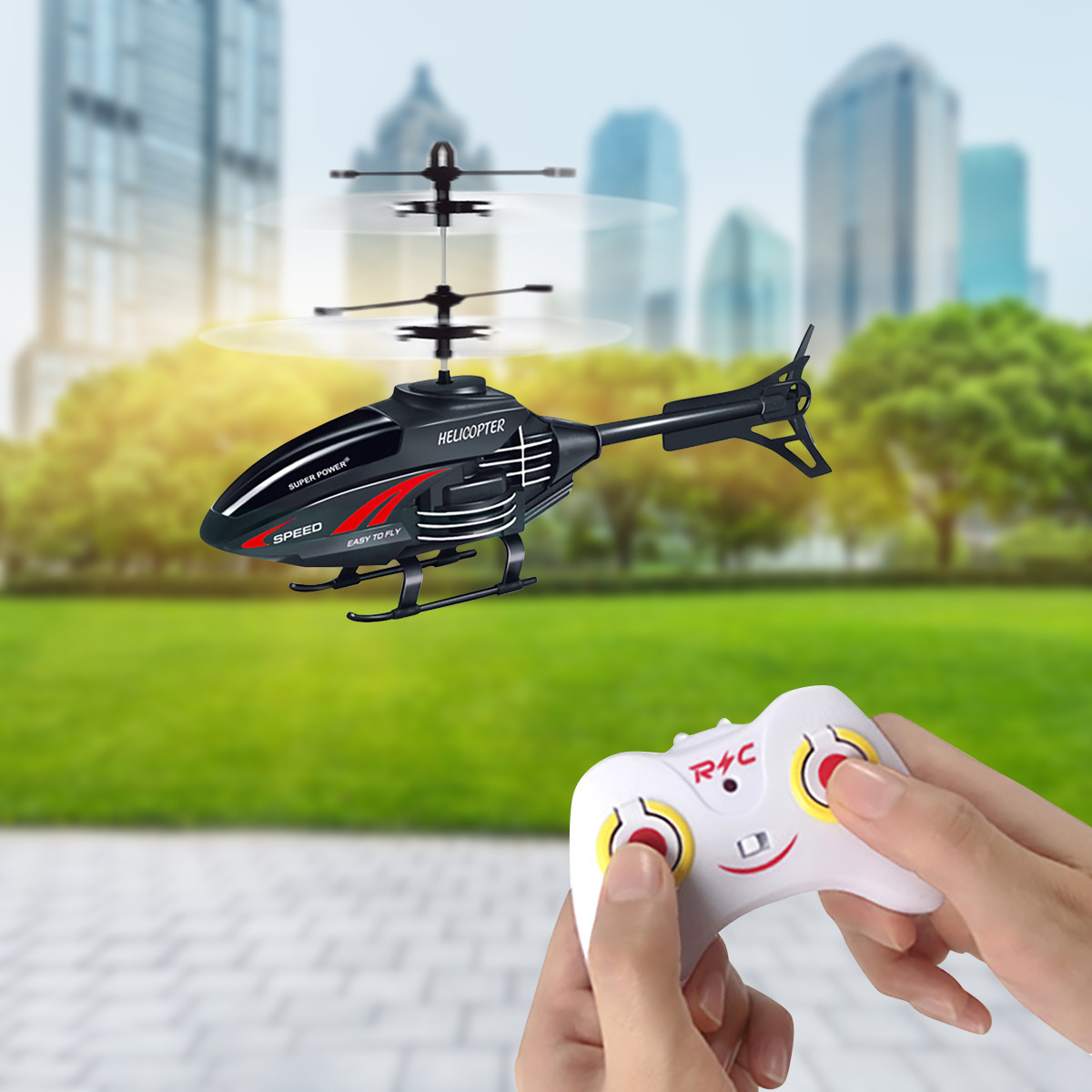 Нажмите на пульт дистанционного управления, чтобы остановить ее полет, легко управлять для детей.
