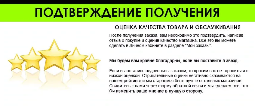 Внимание: Убедительная просьба при получении заказа в пункте выдачи Почты России или транспортной компании проверять товар на наличие повреждений и недостающих деталей. При обнаружении таковых просите сотрудников Почты, транспортной компании составить акт о состоянии почтового отправления!
