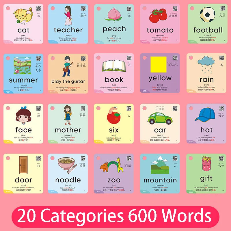 600 слов 20 категорий познавательная обучающая карта в форме животных цвета Монтессори Обучающие китайские английские флеш-карты для детей