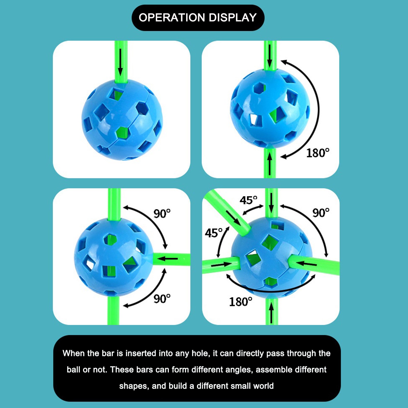 - Прочный и портативный и легко построить: Изготовлен из прочного и высококачественного пластика. Пластиковые штифты легко и безопасно вставляются в шаровые соединители, которые являются многомерными и с несколькими отверстиями, направление штифтов может быть изменено. Вам не придется беспокоиться о разрыве конструкций.