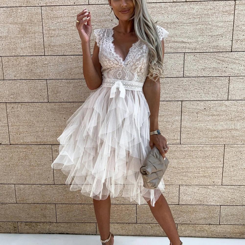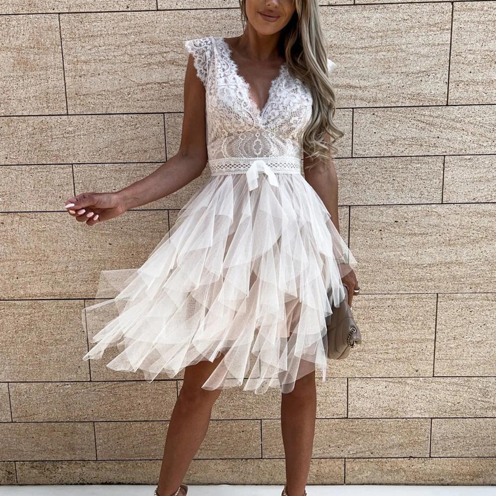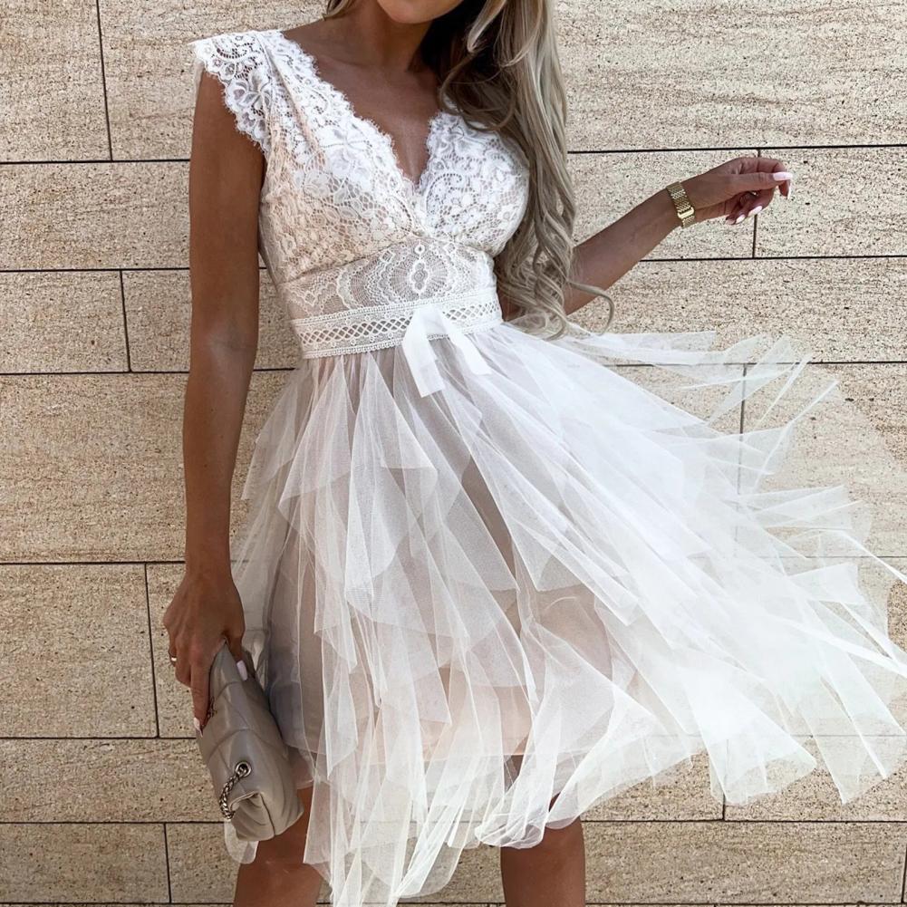 Торжественное платье, кружевное Сетчатое летнее Открытое платье трапециевидной формы для свадьбы