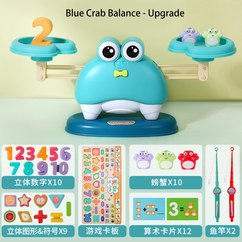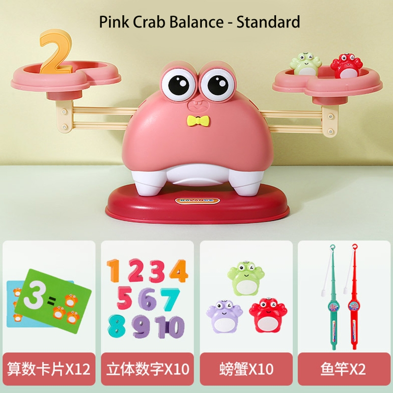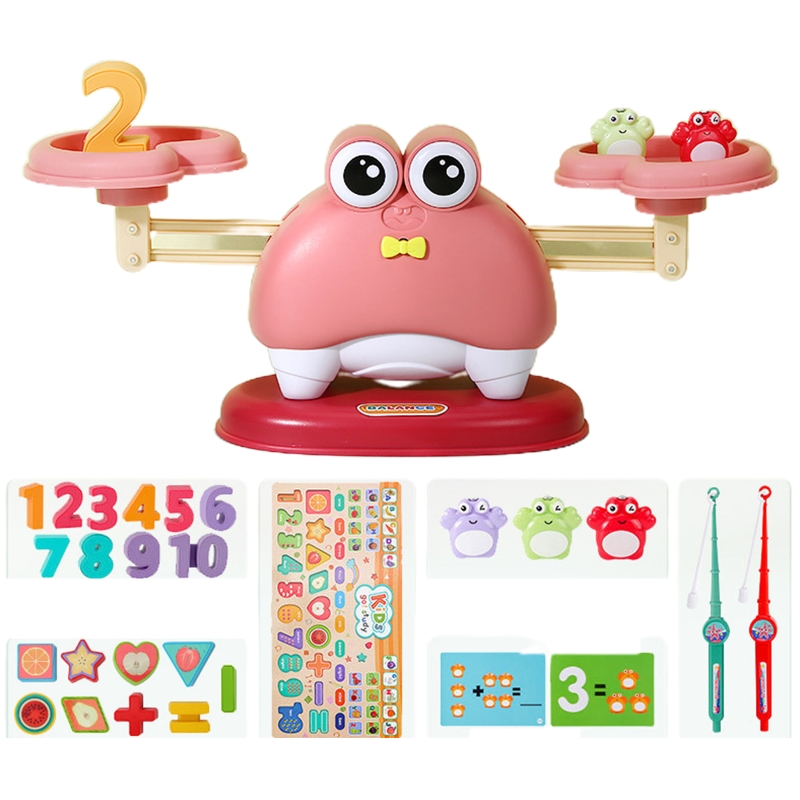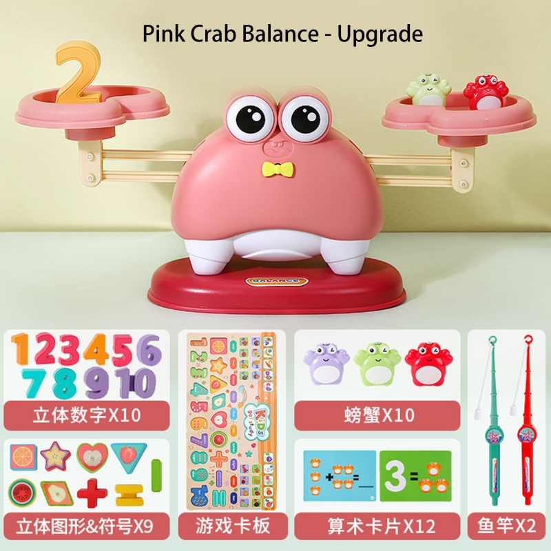 Сенсорная игрушка для улучшения баланса: игрушечный баланс, оснащенный лотком, крабом и количеством весов, в сочетании с обучающими картами для поощрения и улучшения чувств детей, развивайте свои двигательные навыки и стимулируйте свои основные способности рук и глаз.