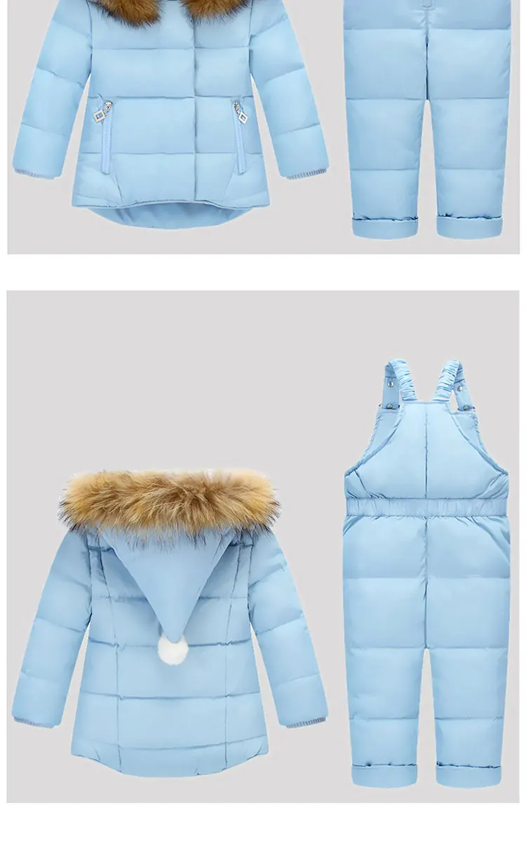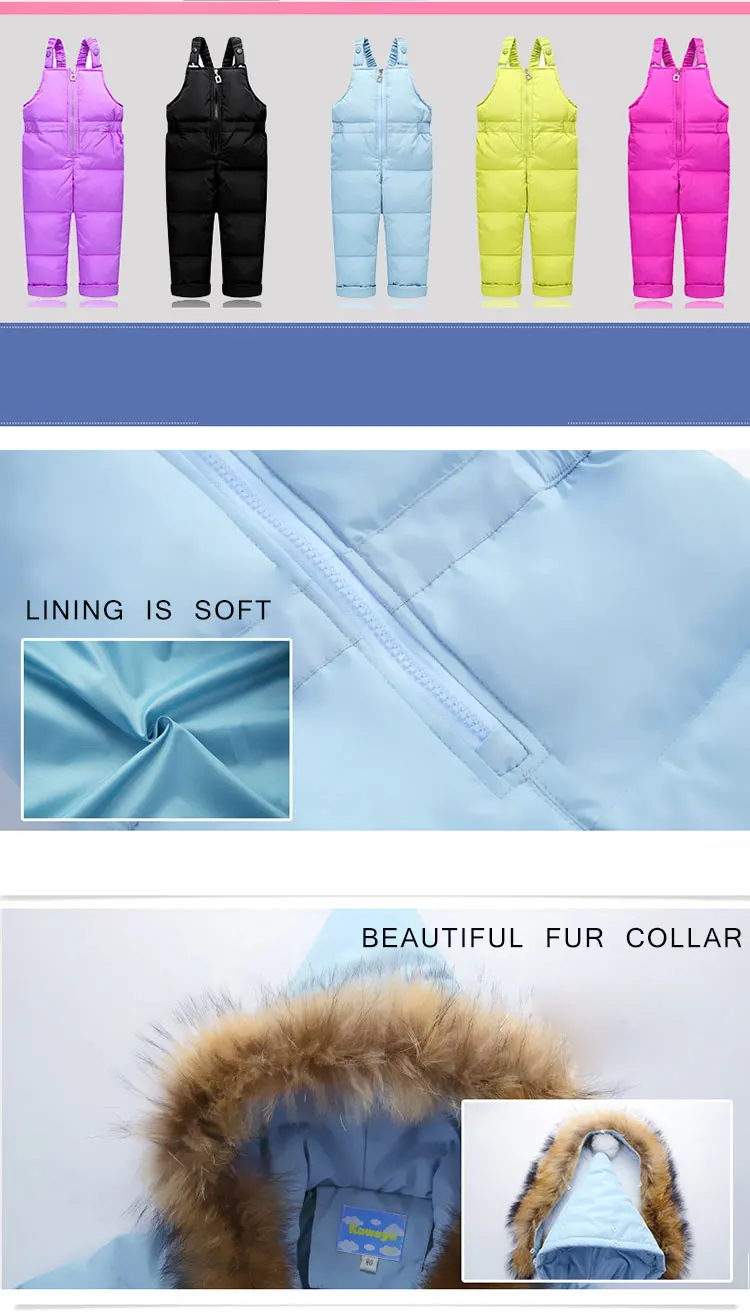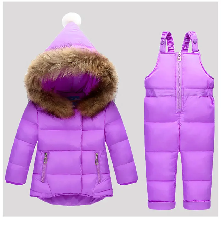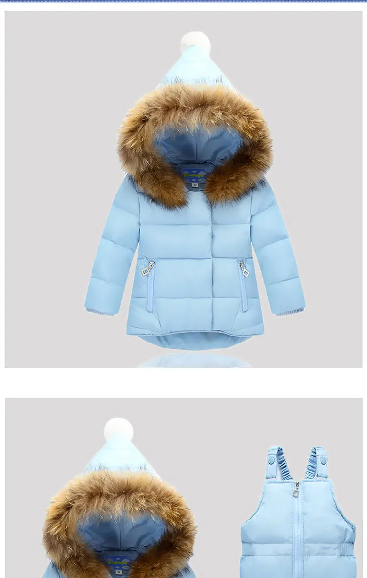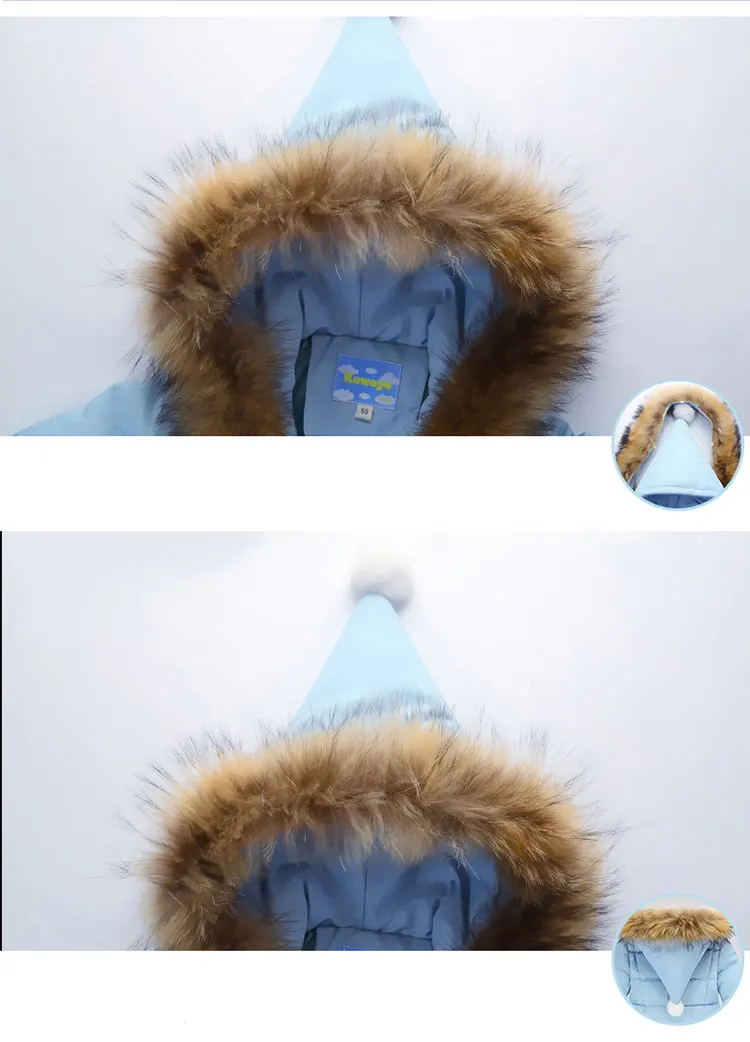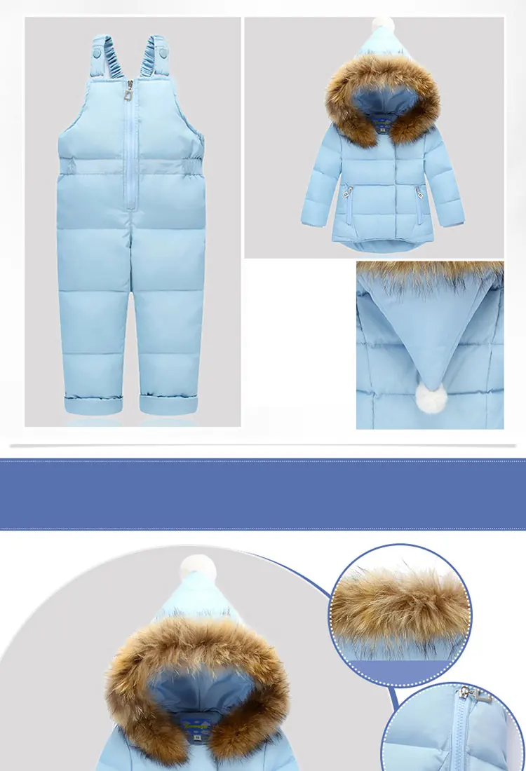 Зимний комбинезон для мальчиков, зимний костюм с мехом для девочек комплекты одежды для детей на утином пуху теплая пуховая парка для малышей, куртка, пальто зимняя одежда