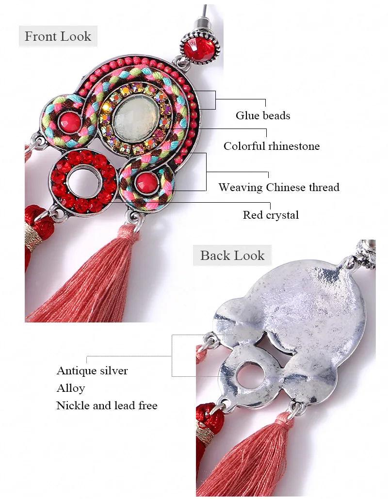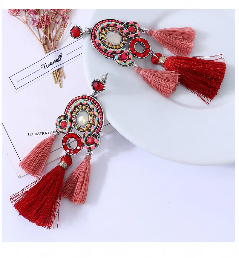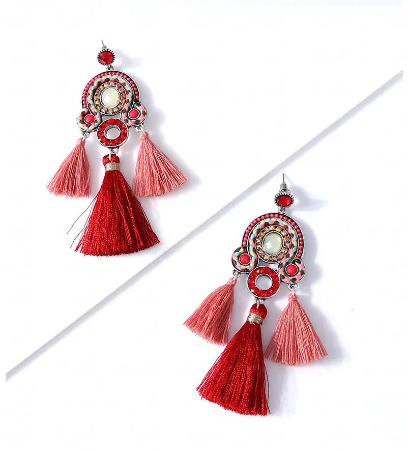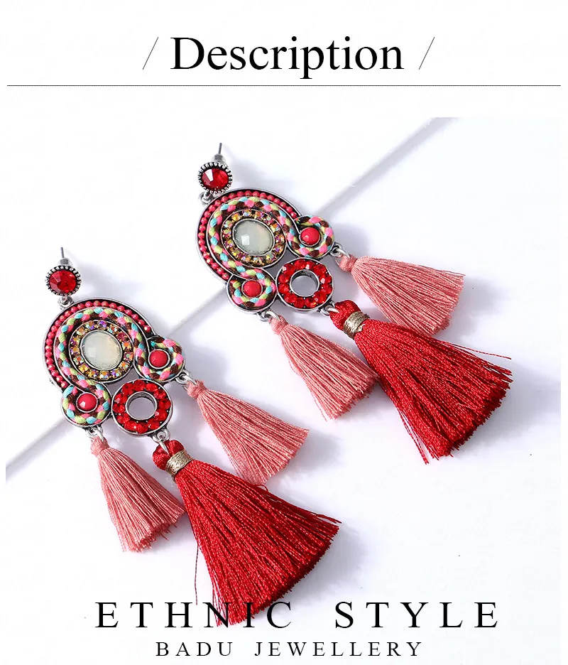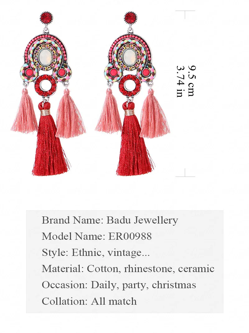 Badu Этническая Серьга красные красочные хрустальные бусины в китайском