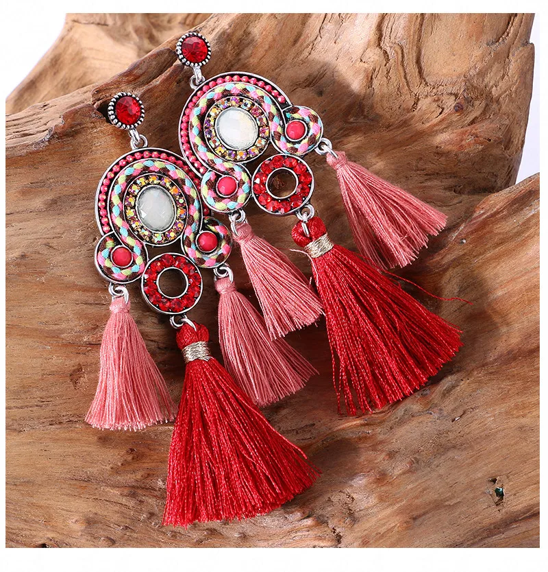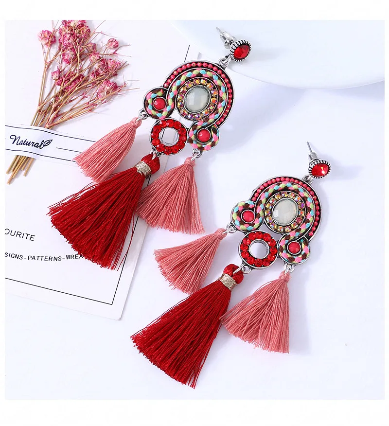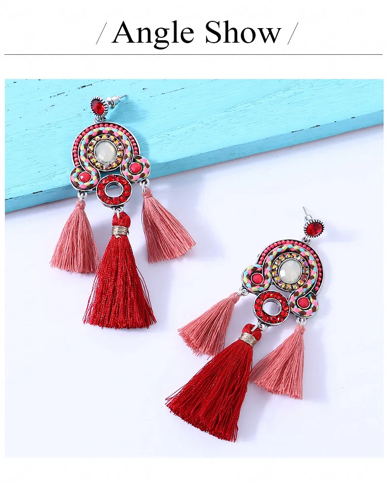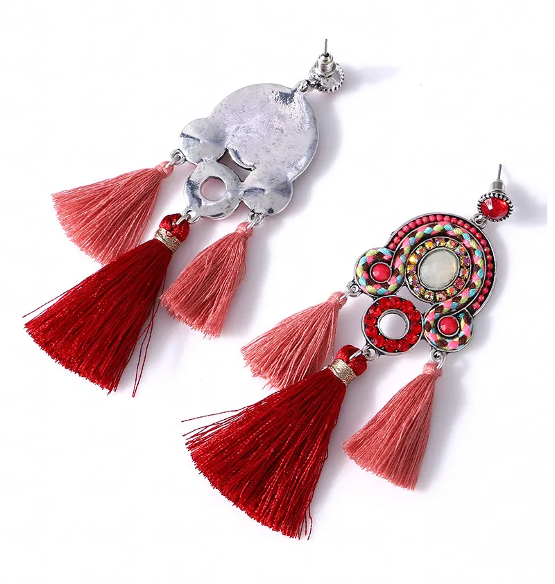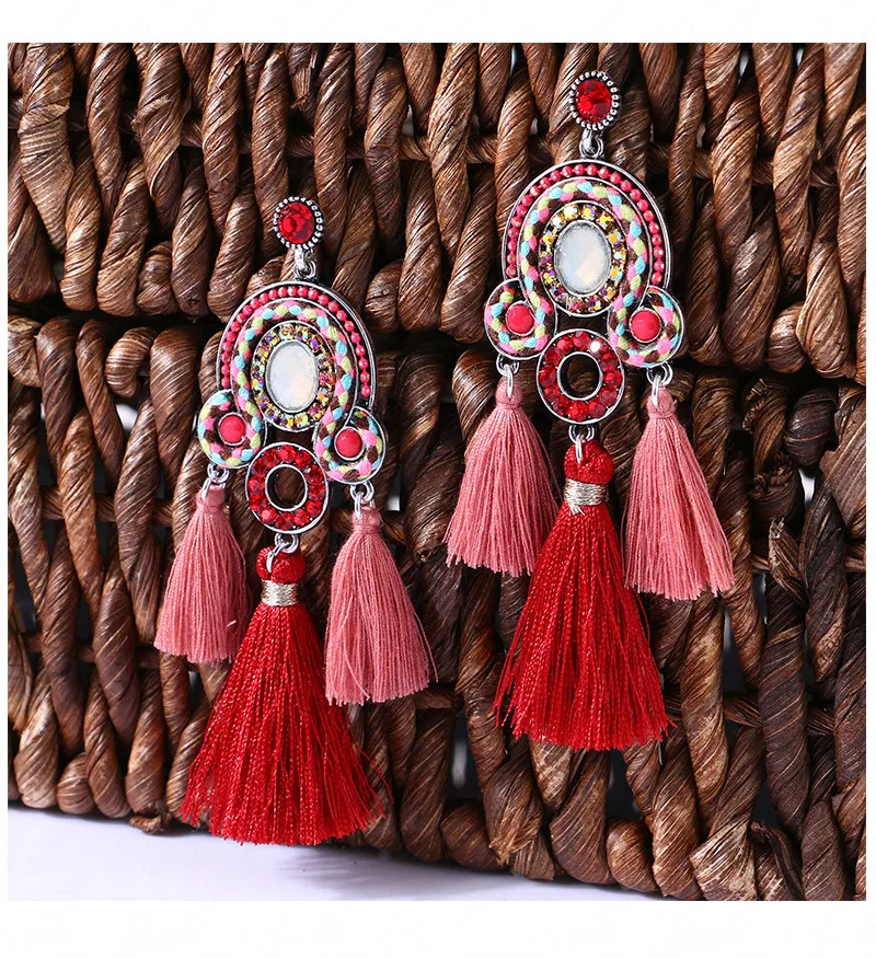 Badu Этническая Серьга красные красочные хрустальные бусины в китайском