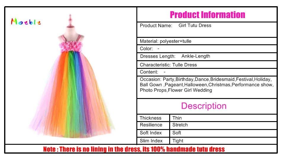 Яркие радужные летние платья для девочек Тюлевое платье-пачка длиной